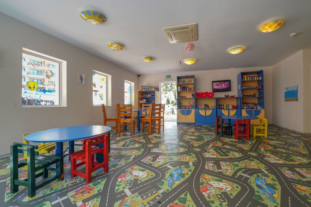 • Безплатни услуги: мини клуб за деца от 4г. до 12г., детска площадка, професионален детски аниматор, мини диско всяка вечер, детски басейн с водна пързалка, бебешка кошара, столчета за хранене, детско меню в а-ла-карт ресторантите