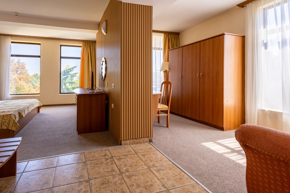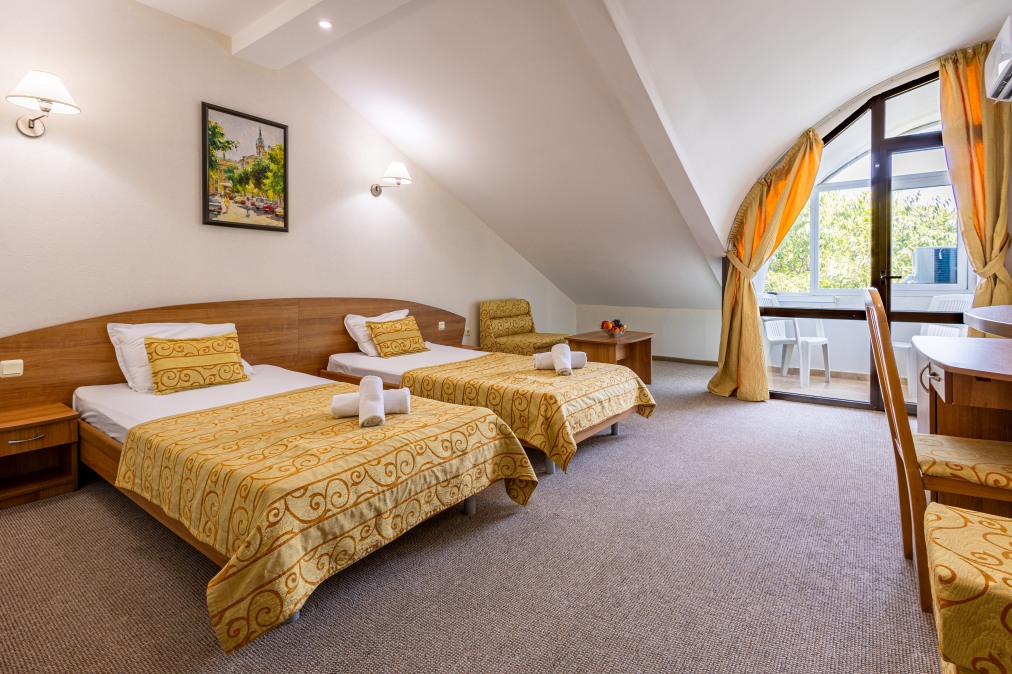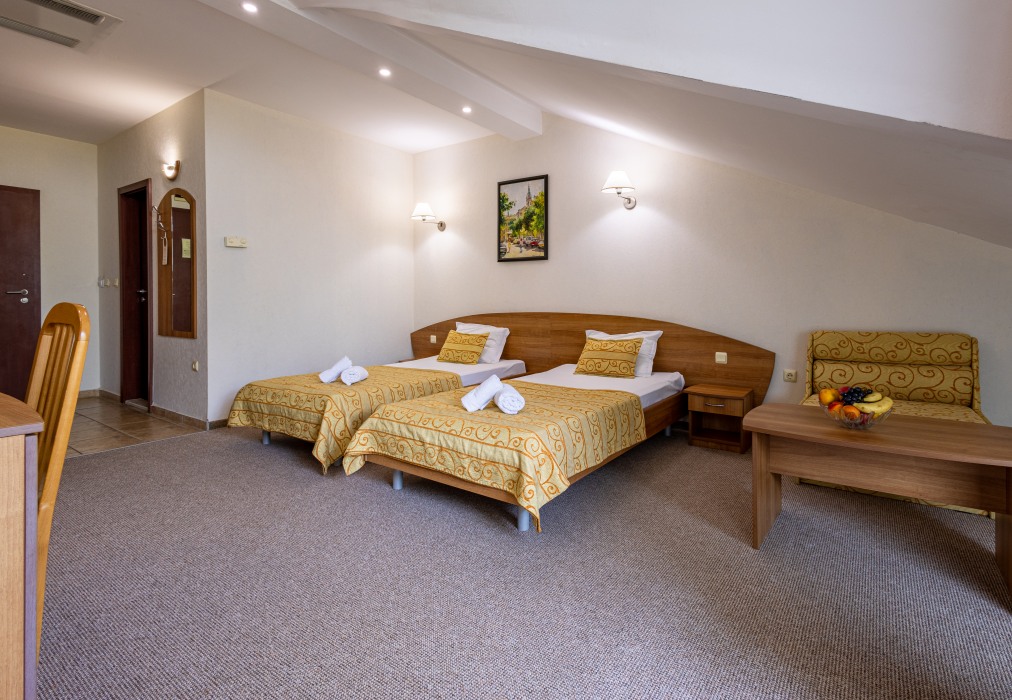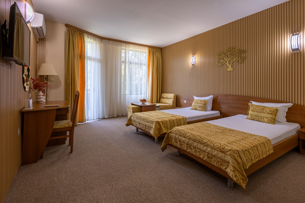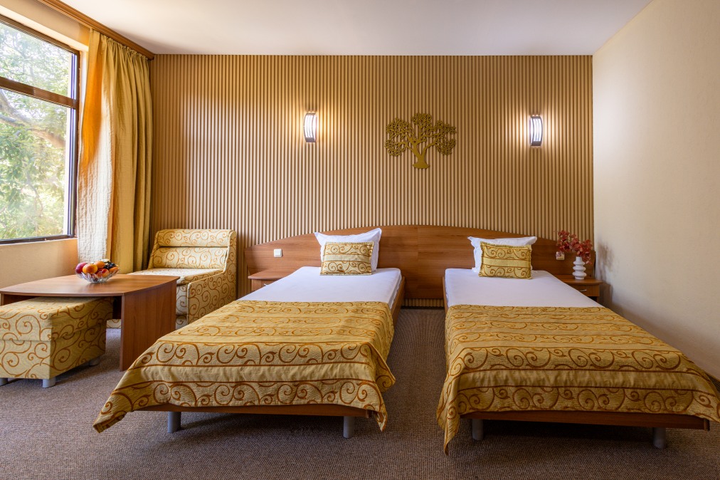 Двойна стая (30 кв.м.). Две единични легла, разтегателен фотьойл. За макс. (2+1)