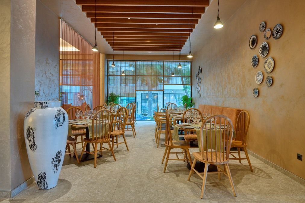 • Разнообразен бюфет, предлагащ секция за приготвяне на ястия пред гостите, пица, паста, диетични, както и различни кулинарни секции, напитки на бюфет: минерална вода, безалкохолни напитки, бира и местно вино, кафе и чай.