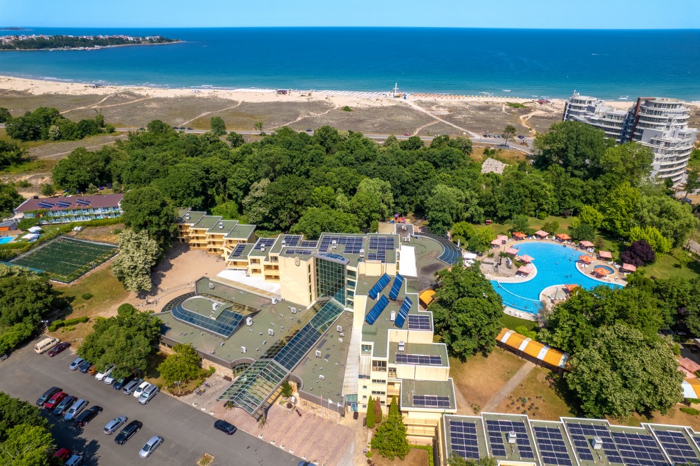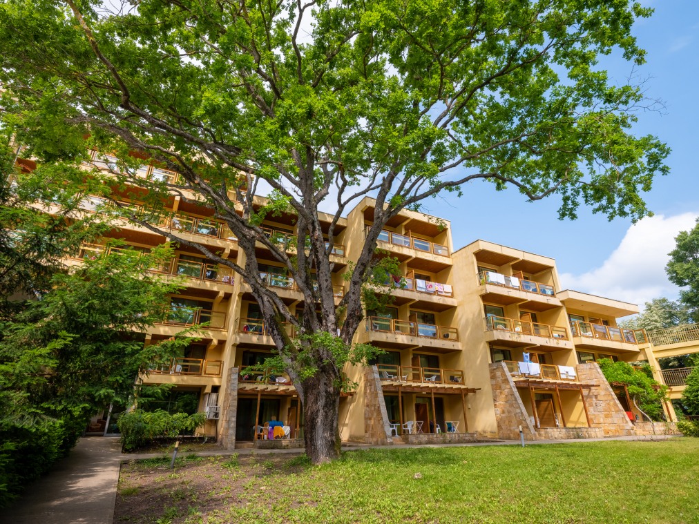 Хотелът се намира на 200 м от плажната ивица, в зеленината на паркова зона с екзотични растения.
