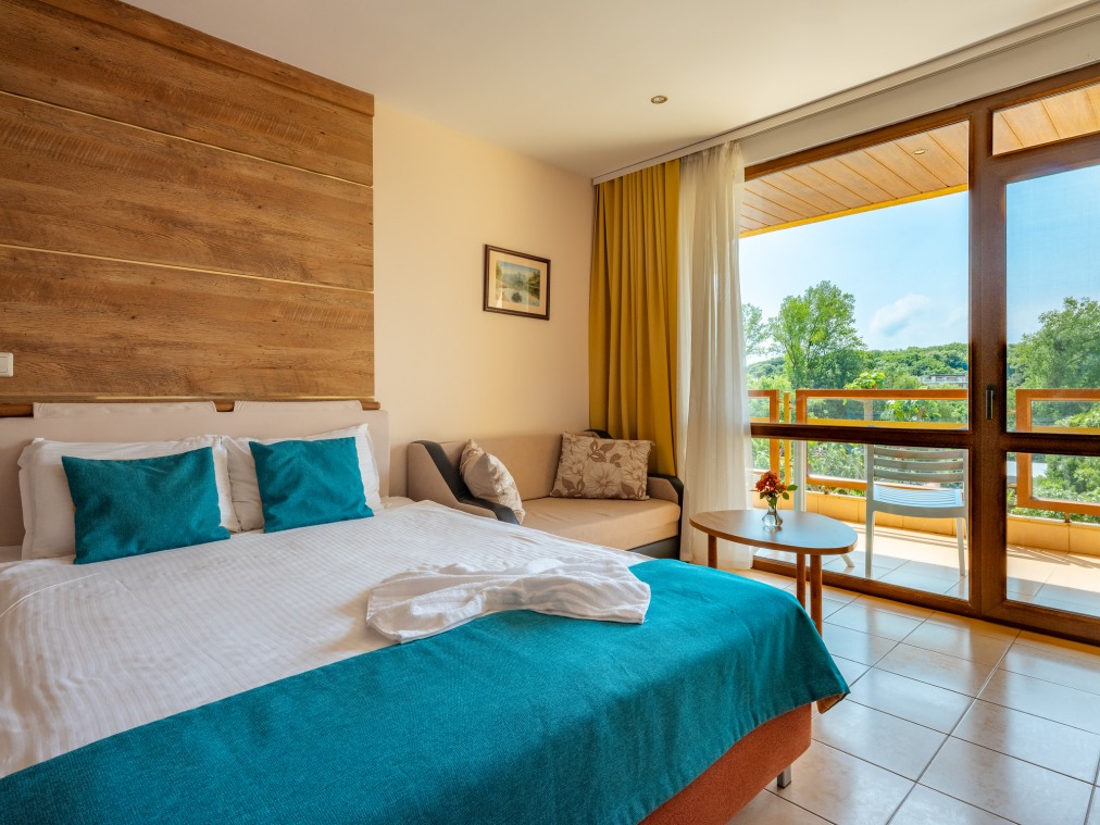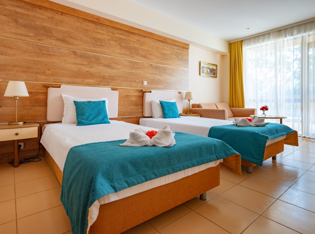 Двойна стая стандарт. Двойно легло или две единични легла и разтегателен фотьойл. За макс. (2+2)