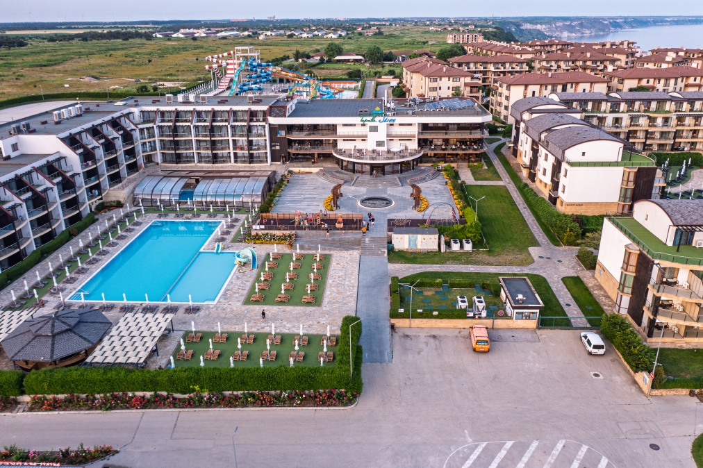 Хотел Топола Скайс Резорт & Аквапарк се намира в красив залив, на 17 км южно от нос Калиакра, в близост до трите най-големи голф игрища в България. Състои се от 4 сгради с апартаменти и хотелска част със стаи.
