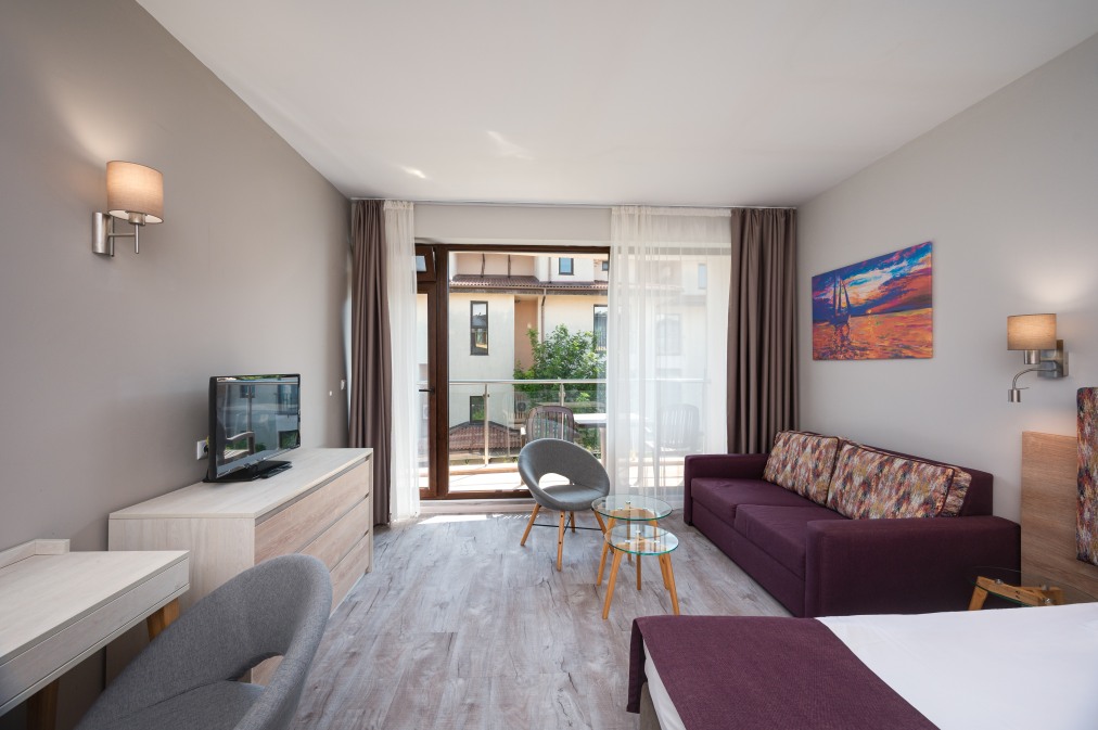 Едноспален апартамент (60 кв.м.). Състои се от спалня с двойно легло и всекидневна с разтегателен диван и кухненски кът. За макс. (2+2)